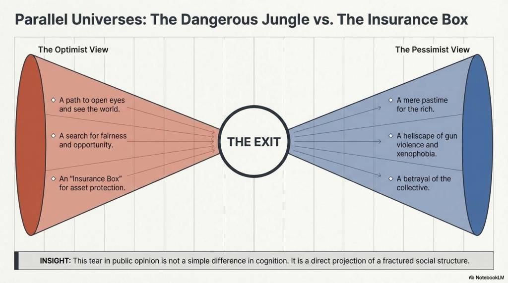 有人视其为开眼看世界、寻求公平与机会的坦途;有人将其等同于资产避险的“保险箱”;也有人将其简化为富人的消遣,甚至妖魔化为充满枪支暴力与排外情绪的危险丛林。这种观点的极度撕裂,并非简单的认知差异,而是印度社会阶层撕裂与“恐惧控制”逻辑的直接投射。