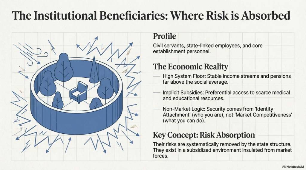 在上一篇文章的分析框架下,这部分群体属于“风险在制度层面被高度吸收”的核心层。他们享受着极高的系统兜底: